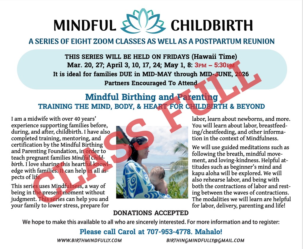 Other 4-week and 8-week classes are available. Please call Carol at 707-953-4778.